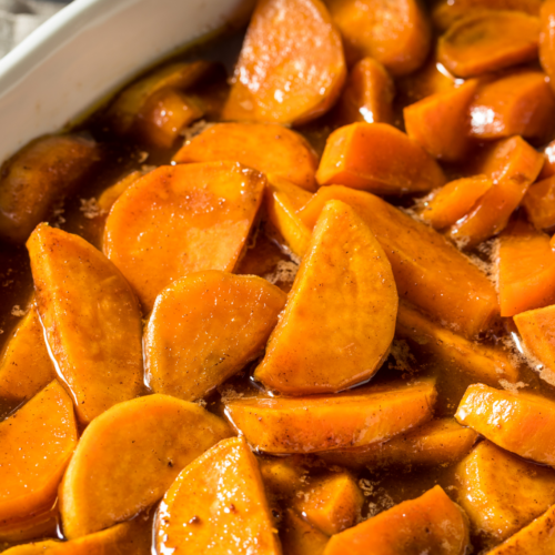 - Make them ahead. Candied yams reheat beautifully — just add a splash of water or orange juice before reheating to loosen the sauce.