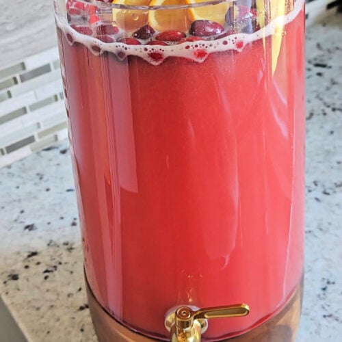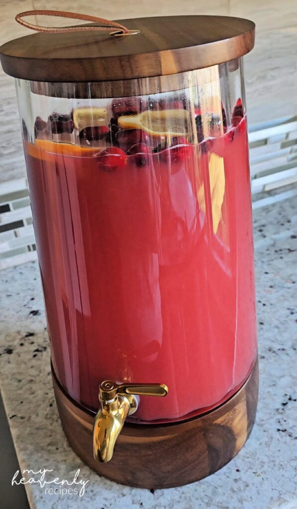This holiday punch is a go-to every year, everyone asks me for the recipe! I got this gorgeous 1.7 gallon drink dispenser on Amazon too! Make sure to also try my orange cranberry punch recipe.