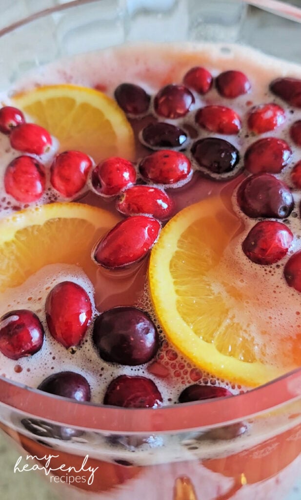 - Sliced oranges and cranberries for garnishes
