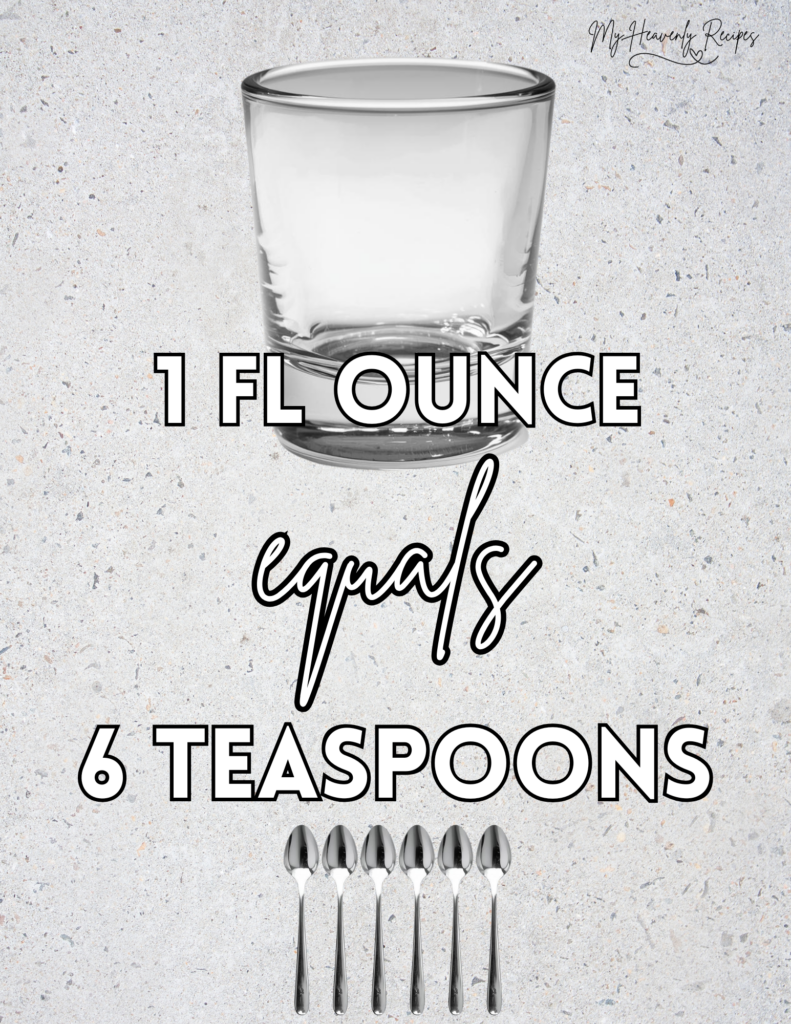 Quick tip: If you’re converting the other way around, just multiply the number of ounces by 6 to get the teaspoons.